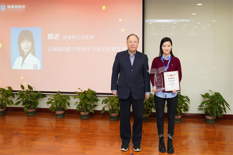 陸道培醫(yī)療集團(tuán)領(lǐng)導(dǎo)特意為與道培醫(yī)療同齡,有著二十年道培工齡的員工魏曉霞頒發(fā)了特別獎(jiǎng),感謝她二十年的堅(jiān)持,這份堅(jiān)定執(zhí)著的信念,也正是我們要發(fā)揚(yáng)的道培精神。